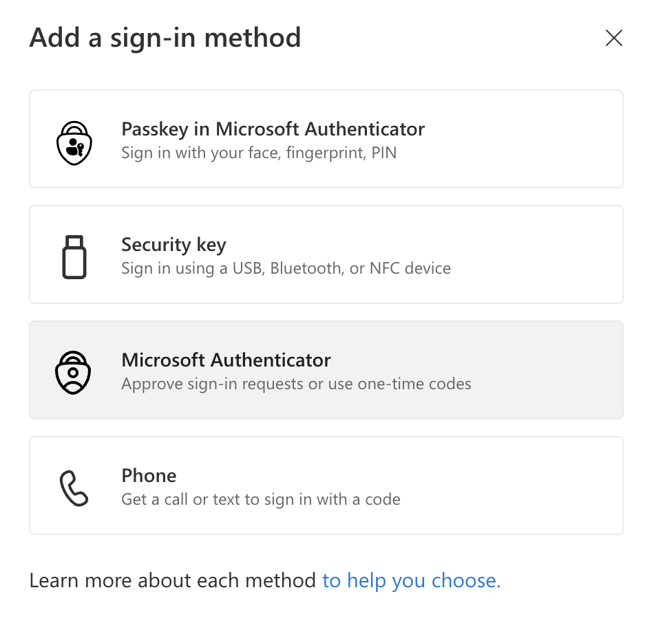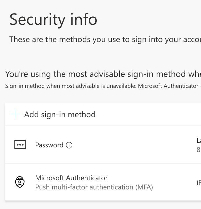 - You may add whatever method you like, but we recommend using "Microsoft Authenticator":